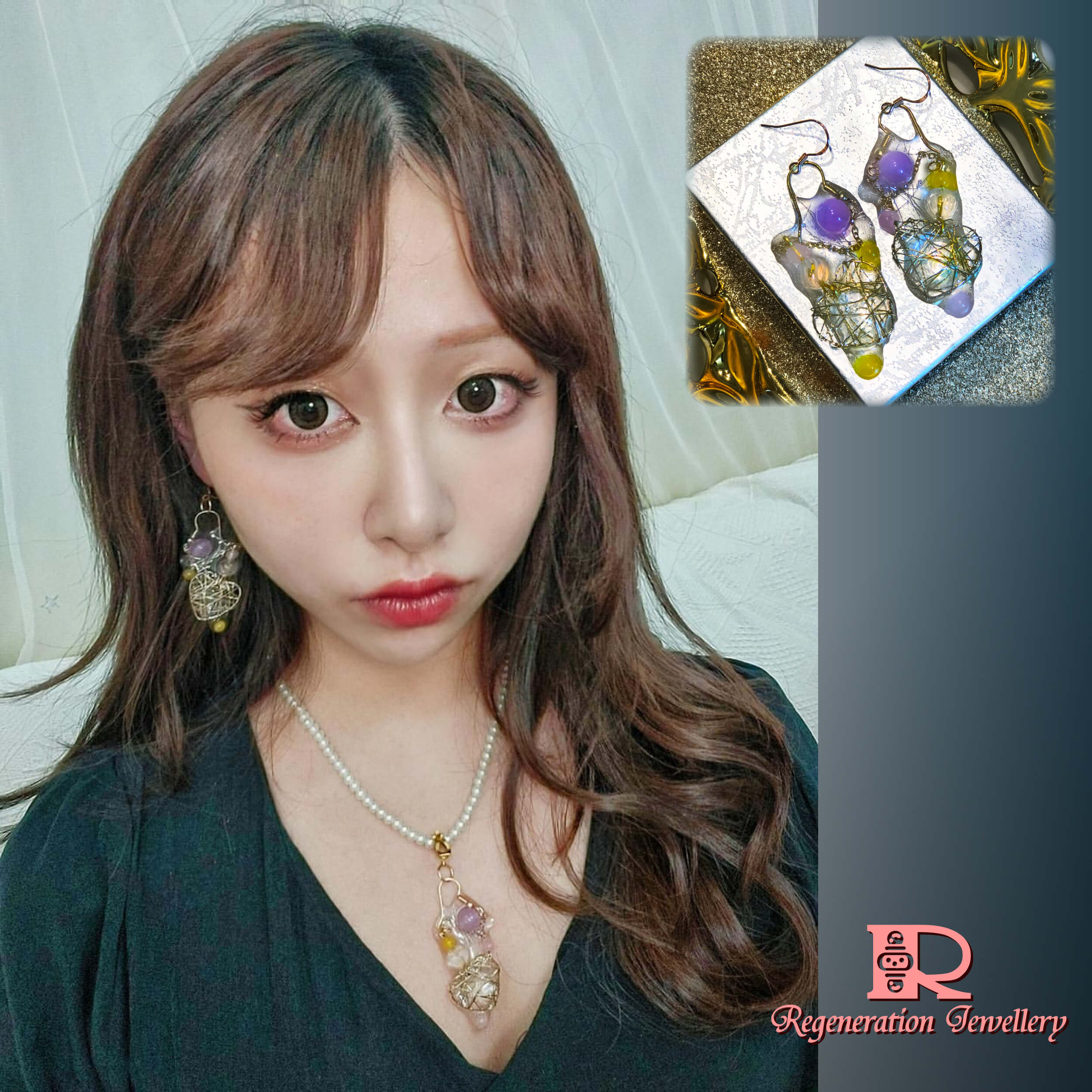 此系列的意念是希望以藝術角度來製作出獨一無二並且富有藝術感的飾物,耳環類以「耳環中的耳環」作為設計意念。